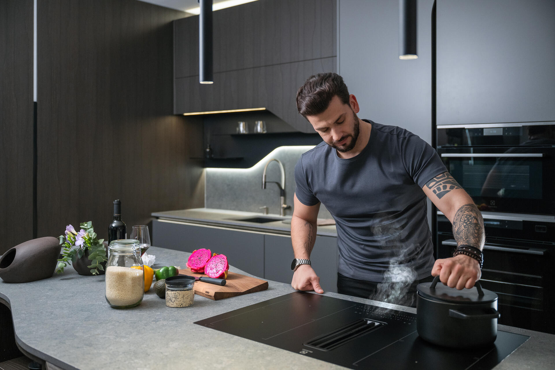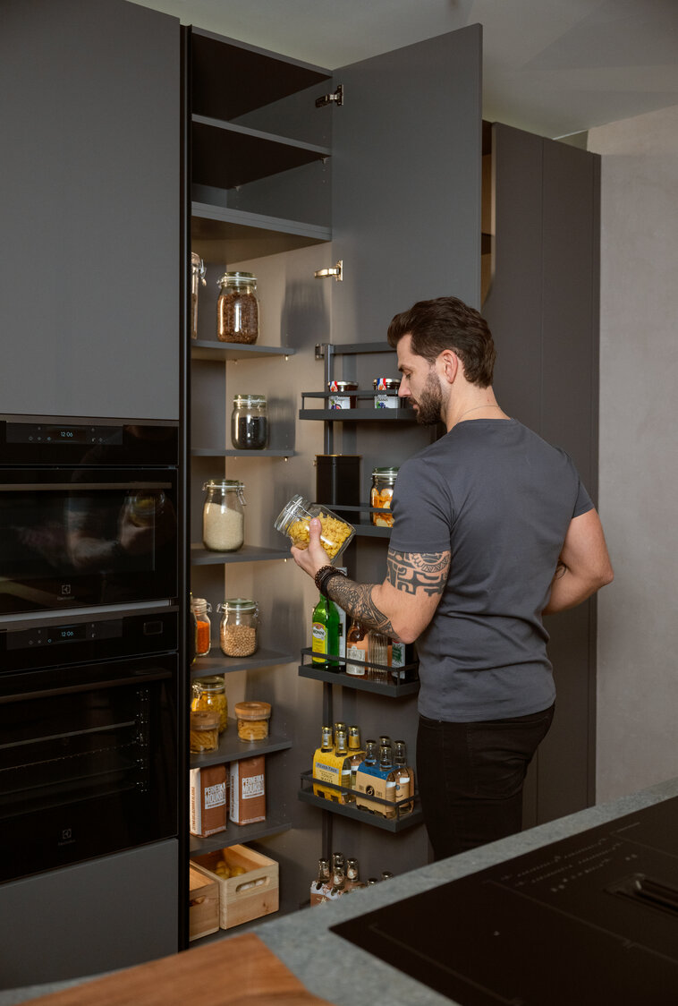 Precizně organizované úložné prostory, odolné materiály a chytré technologie dělají z vaření zážitek. Vaření v takové kuchyni není jen nutností – stává se zábavou a prostorem pro kreativitu, kde si každý muž najde své místo.