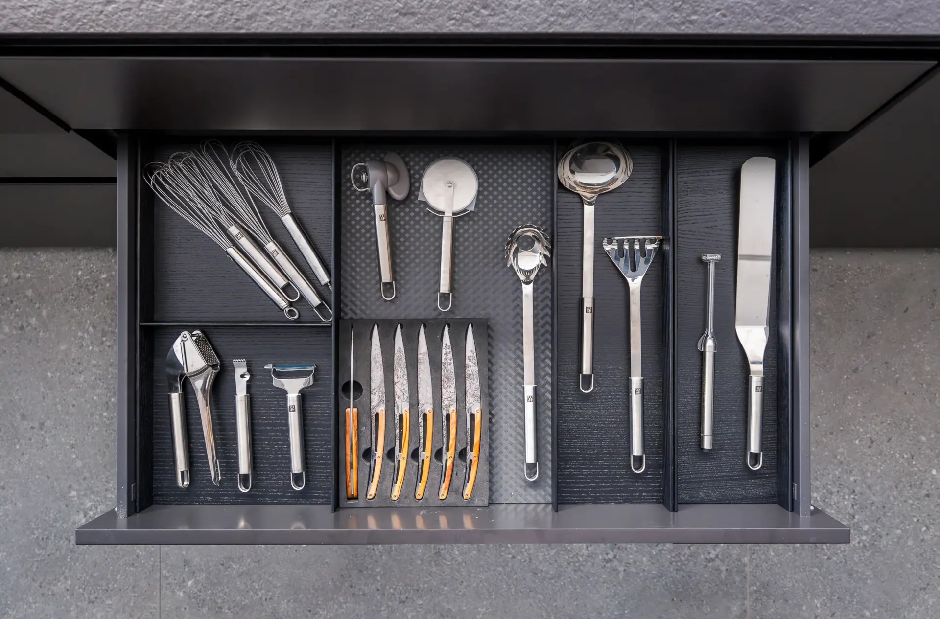 Zásuvky – příborník tmavý dub